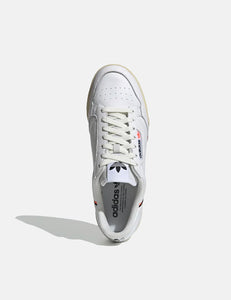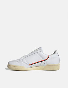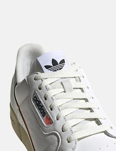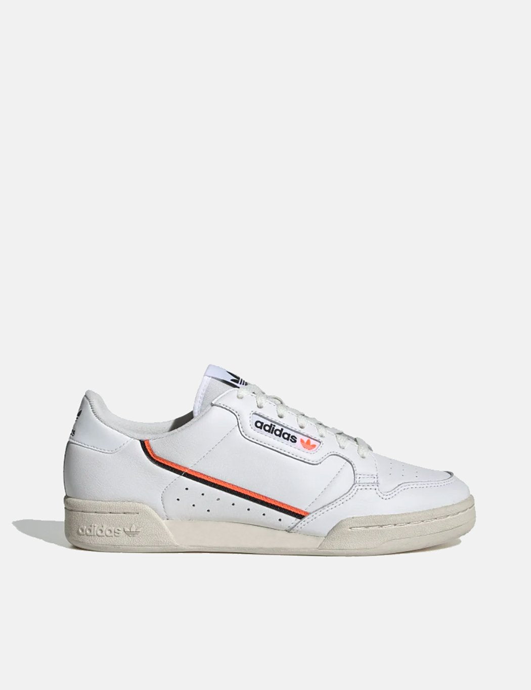 The Adidas Continental 80 trainers in White/Black/Orange from the Adidas trainers Autumn/Winter 2019 collection.