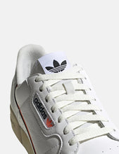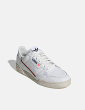 The Adidas Continental 80 shoes capture the retro look of '80s tennis style. These Adidas low-top leather trainers show off a swooping two-tone stripe on the side and a split rubber cupsole.