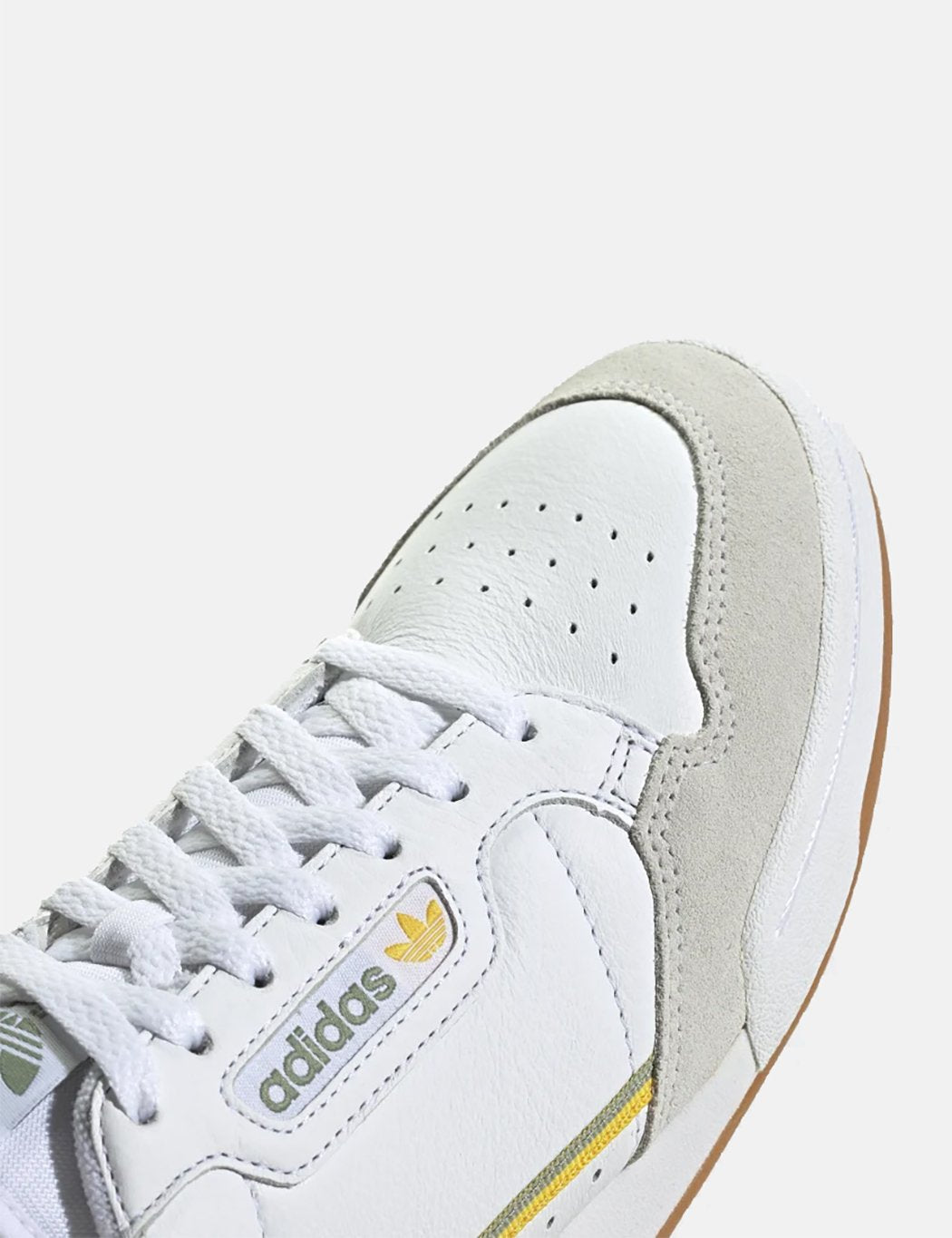 From Adidas the Continental 80 trainers in cloud white and crystal white from the Adidas Originals trainers Spring/Summer 2020 collection.