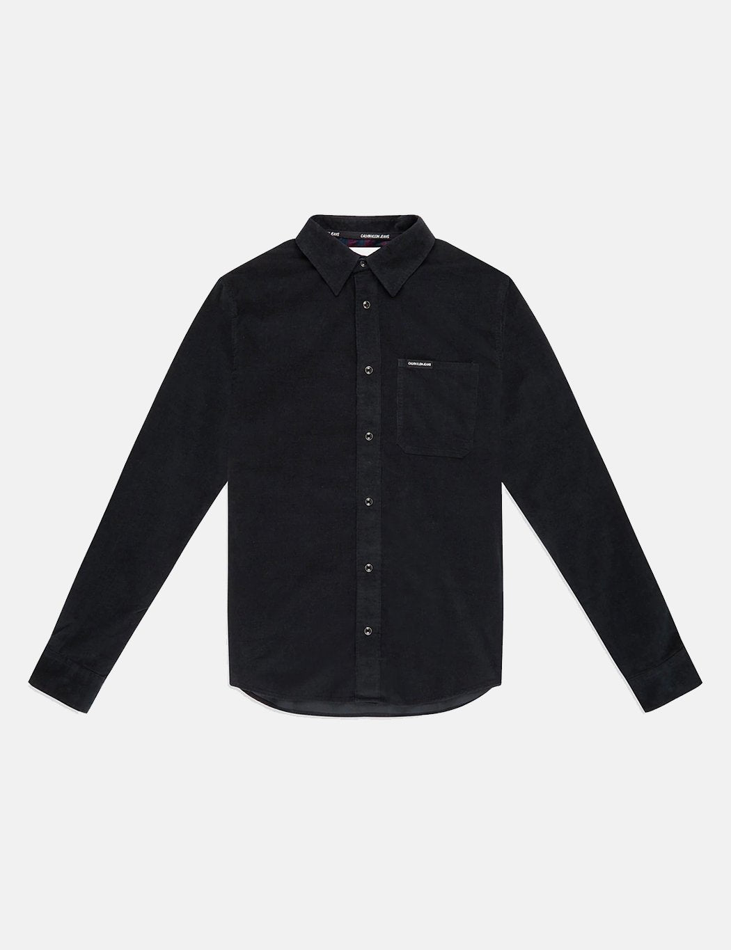 Lightweight mini corduroy shirt with classic shirt collar in CK black, featuring one chest pocket with Calvin Klein tab branding.